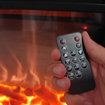 1 – Turn on the fireplace: press the power button on the remote control to turn on the FUEGO electric fireplace.